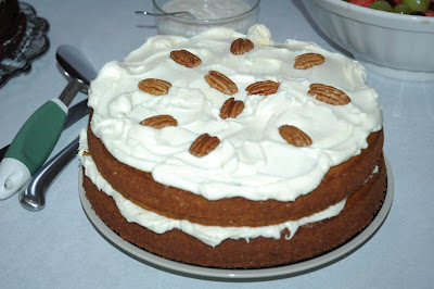 We provided the deserts for the Friday night meeting. Val's carrot cake...yum. Topped with a cream cheese frosting and pecans. She also made her State Fair winning Chocolate cake and Pam made some great chocolate brownies.