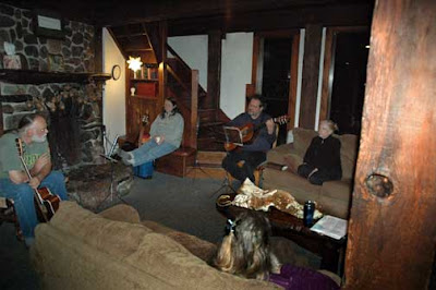 Playing music with several homeless friends at the Mendocino Presbyterian